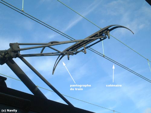 Sur la page si dessous sur la photo du haut dans le coin droit en haut on voit la couleur verte du fil conducteur (couleur du cuivre), et la couleur gris-noir du fer du pantographe. http://www.infolignes.com/article.php3?id_article=10