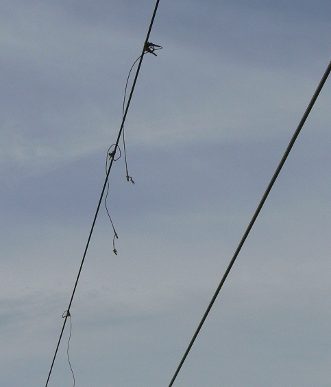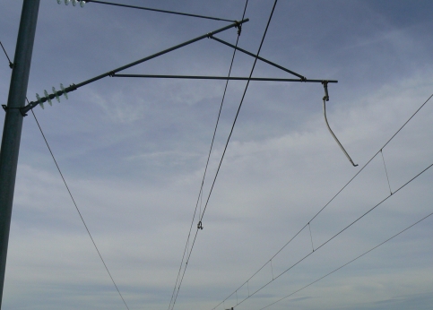 Remarque : La différence de couleur du ciel entre les photos des caténaires endommagés et la photo de la pièce est flagrante. La couleur du "fil conducteur" sur lequel est prise la photo de la pièce n'est pas la couleur du cuivre, ce n'est donc pas un fil conducteur. J'ai une photo très nette de la couleur d'un caténaire :