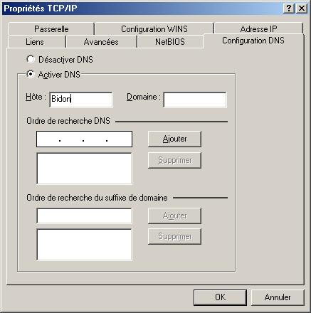 4°) Cliquez sur « Configuration DNS », vous obtenez ceci :