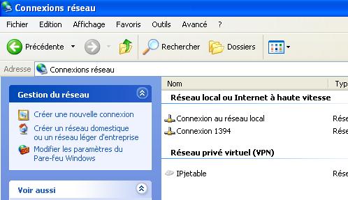 * Double-cliquer sur "Connexions réseau", pour obtenir :