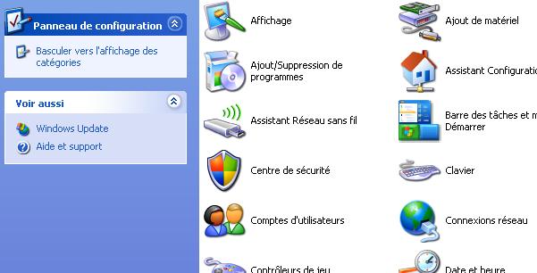 Cliquer sur "démarrer" (en bas à gauche) --> Panneau de configuration. Vous obtenez :