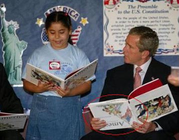 Le bouquin à l'envers... les jumelles bouchées... il a vraiment peur de pas passer pour un con !