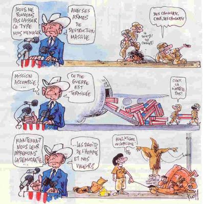 La résolution du Parlement européen du 6 juillet 2005 qui dénonçait « le kidnapping et la disparition de nombreux citoyens irakiens et étrangers en Irak » et demandait quils « soient immédiatement libérés » a été peu répercutée dans les médias français qui continuent à donner une vue partielle et partiale de la situation en Irak. La résistance multiforme du peuple irakien à loccupation est le plus souvent caricaturée en la résumant à des forces « islamistes » et « saddamistes ». Il est rarement rendu compte du sort des femmes dont les droits déjà réduits seront encore diminués avec la mise en uvre de la nouvelle constitution qui doit être compatible avec « la loi islamique ».