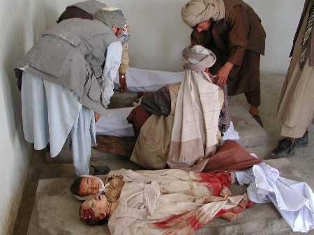 7 octobre 2001 : Attaques terroristes en Afghanistan : Kaboul, Kandahar et Jalalabad ont été la cible d'attaques terroristes sans précédent ce dimanche 7 octobre 2001. On ignore encore le nombre de victimes, et le nombre de survivants sous les décombres attendant les secours. Le commanditaire de ces massacres semble bien être le réseau terroriste de G.W. Bush ; le terroriste Tony Blair a d'ailleurs revendiqué ces attaques terroristes. On s'attend à ce que ces terroristes soient livrés à la justice internationale. Les gouvernements les abritant, s'ils ne s'exécutent pas, doivent évidemment s'attendre à de justes représailles.